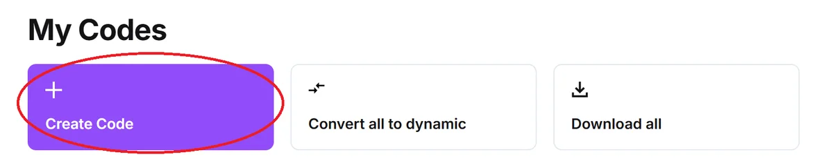 1. In QR Code Developer, click on the Create Code button.