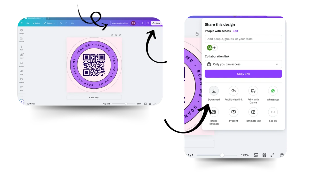 Design your Sticker.Now that your QR code is ready move on to the steps to create the sticker. The first step is to choose the right tool for it. Canva is an easy-to-use design tool that provides a wide range of templates and various editing options. Let’s create a QR code sticker on Canva: